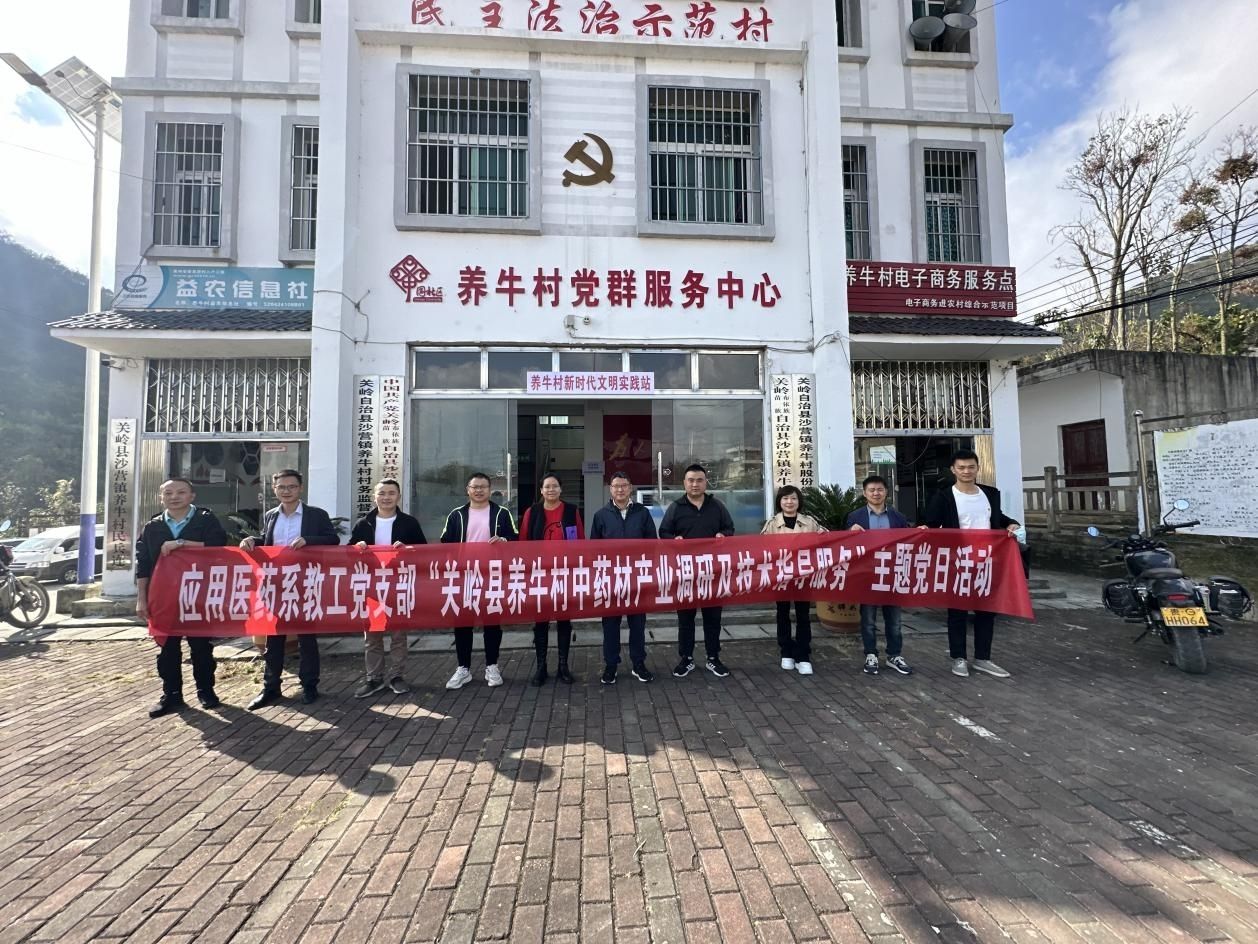 为深入学习贯彻党的二十届三中全会精神和习近平总书记关于“中医药是中华民族的瑰宝,必须保护好、发掘好、发展好、传承好”的重要指示精神。2024年11月14日上午,应用医药系教工支部党员同志及我系中药材种植方面的专家到关岭县养牛村开展中药材产业调研及技术指导服务主题党日活动。