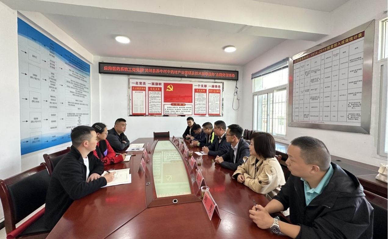 党员同志们来到养牛村后与村委干部、种植户代表及驻村干部围绕中药材种植开展深入的座谈交流。座谈会上,专家组结合当地气候情况、土质状况、市场需求等为种植户推荐当地适宜的中药材品种,并针对种植户提出的问题进行详细解答。
