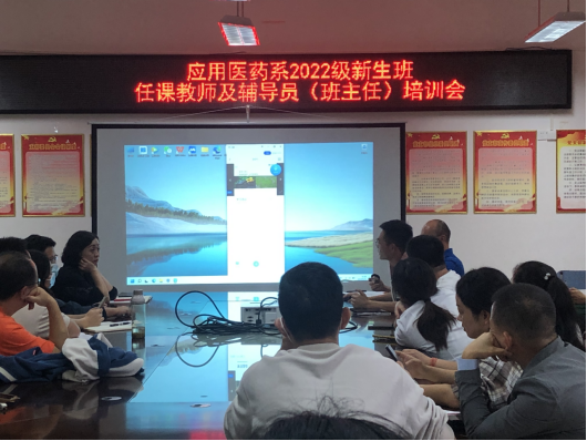 为贯彻落实《省教育厅办公室关于做好2022年普通高校新生入学工作的通知》精神,结合学院关于疫情防控及新生教育教学工作的安排部署,着力保障正常教育教学秩序,2022年9月15日,应用医药系组织召开了2022级线上教育教学工作培训会。系领导班子成员,2022级全体任课教师,辅导员、班主任参加了会议。