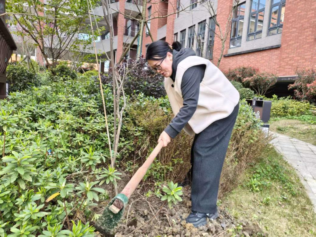 在药用植物园活动现场,党员同志们热情高涨、分工协作,挥锹挖坑、扶苗定植、培土压实、提水浇灌,每一个环节都有条不紊、认真细致。大家精心挑选金银花、薄荷、连翘等兼具生态价值与药用价值的中医药材树苗进行栽种,劳作过程中,党员教师们结合专业知识,现场讲解各类药用植物的生长习性、药用功效、炮制方法及临床应用,从植物形态到药性药理,从传统典籍记载到现代临床应用,让参与人员在劳动实践中近距离感受中医药文化的博大精深,实现了“植树+科普”的有机融合。党员同志们认真聆听、积极提问,纷纷表示在亲手栽种中草药的过程中,既体会到了劳动的乐趣,也加深了对中医药专业知识的理解。