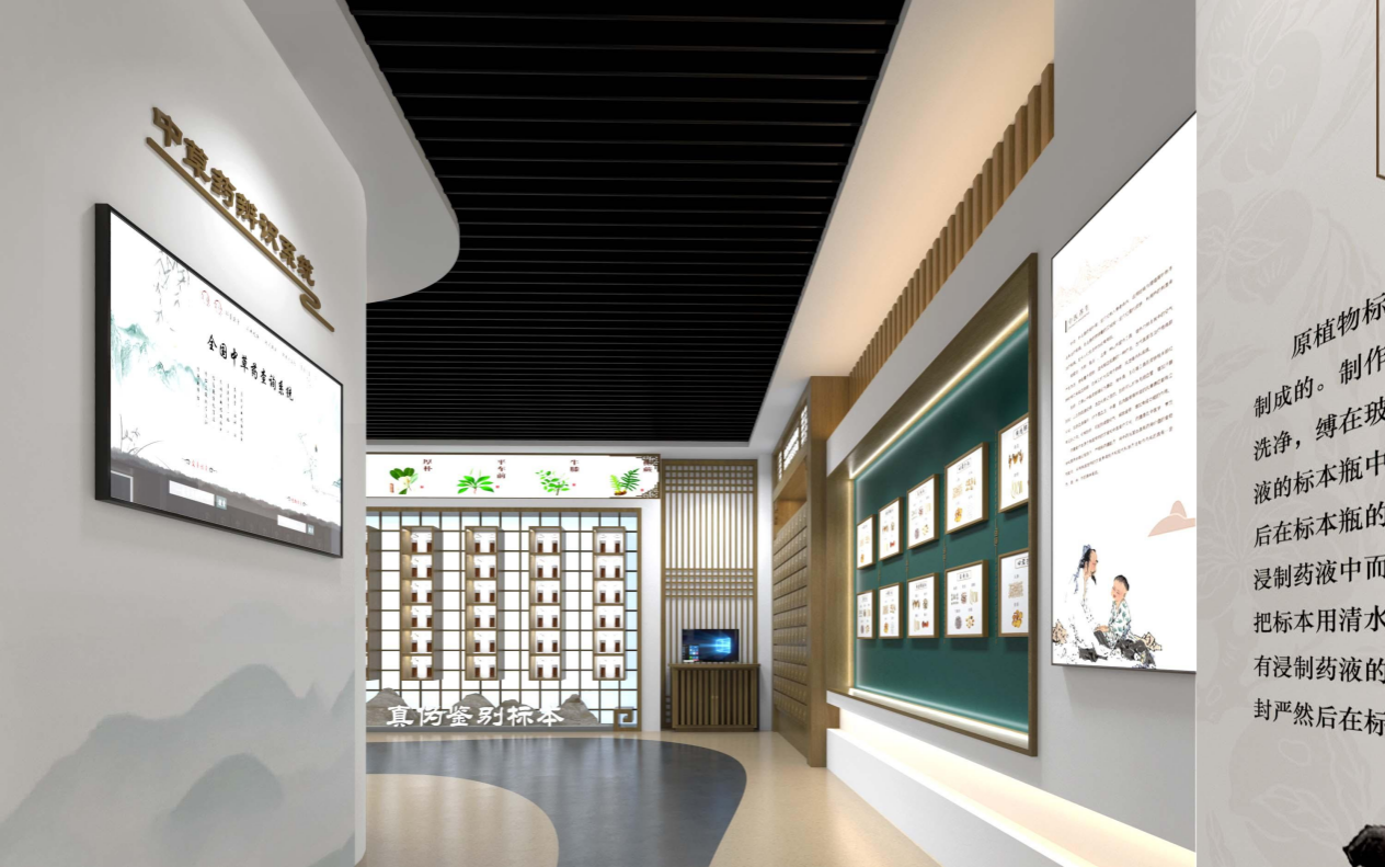本馆面积约249平方米,分为序厅、中医药文化、全国中药材分布、浸制标本、腊叶标本、中药材标本、中药饮片标本、民族医药、方剂标本、药食同源、真伪鉴别标本等展示区域。展馆标本种类繁多、分类齐全、真伪并列、兼具互动,是教学、科研、科普宣传和收集、制作、鉴定、保存各类中药标本的综合性展厅。