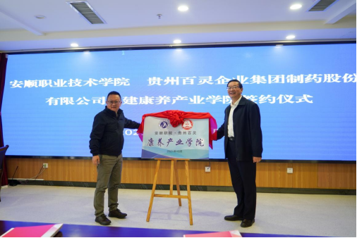 百灵康养产业学院筹建于2020年,经过一年的试运行后于2021年正式挂牌,依托我院省级高水平专业群健康服务技术专业群及贵州百灵企业集团制药股份有限公司共同组建。在安顺市委、市政府的关心帮助下,协同安顺市卫健局、安顺市农业农村局、安顺市科技局、安顺市医学会、安顺市人民医院、安顺市中医院、安顺市妇幼保健院、贵州健一生药业等利益相关部门共同推进建设。