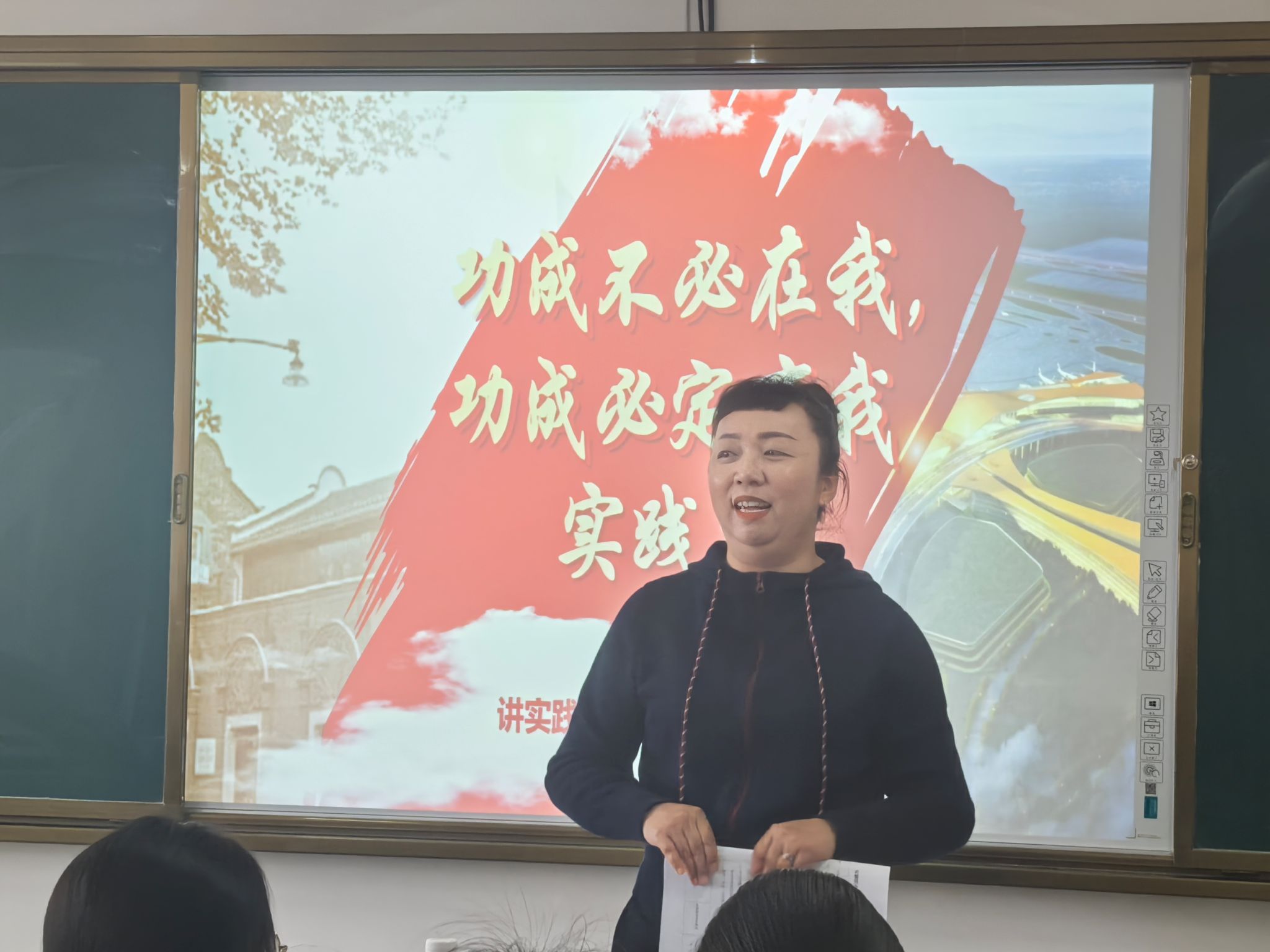李诗洋老师主讲“实践”。结合自身实际经历,以习近平总书记说的“幸福,都是奋斗出来”为角度,向同学们讲述了自己一直以来靠努力拼搏、向上向强的故事;同时也对贵州这些年取得的可喜变化、总书记考察时的温暖话语和场景等方面作了生动的描述。