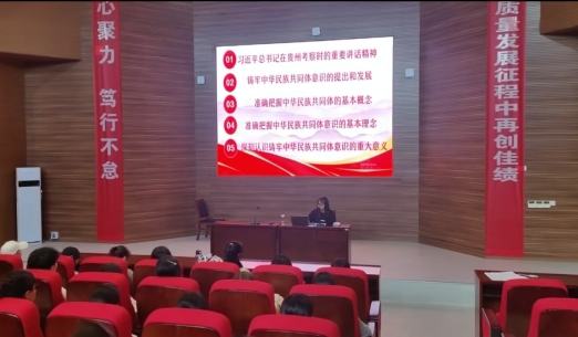李思娴老师用通俗易懂的语言、鲜活的实例,重点围绕习近平总书记在3月17日-18日到贵州考察时的重要讲话精神、铸牢中华民族共同体意识的提出和发展以及基本概念、基本理念开展培训。