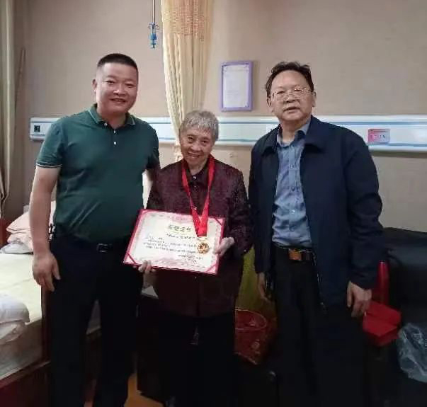 6月28日,学院党委委员、组织部部长方小勇和离退休工作科科长余勇刚一行,到安顺市西秀区徳阑居老年康养中心看望行动不便的老党员高万芬同志,并向高万芬同志颁发“光荣在党50年”纪念章。(文:余勇刚 图:杨秋硕)