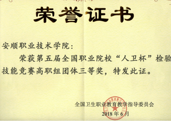 安顺职业技术学院获2018年第五届全国职业院校“人卫杯”检验技能竞赛高职组团体三等奖