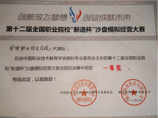 安顺职业技术学院代表队获2016年第十二届全国职业院校“新道杯”沙盘模拟经营大赛全国总决赛一等奖