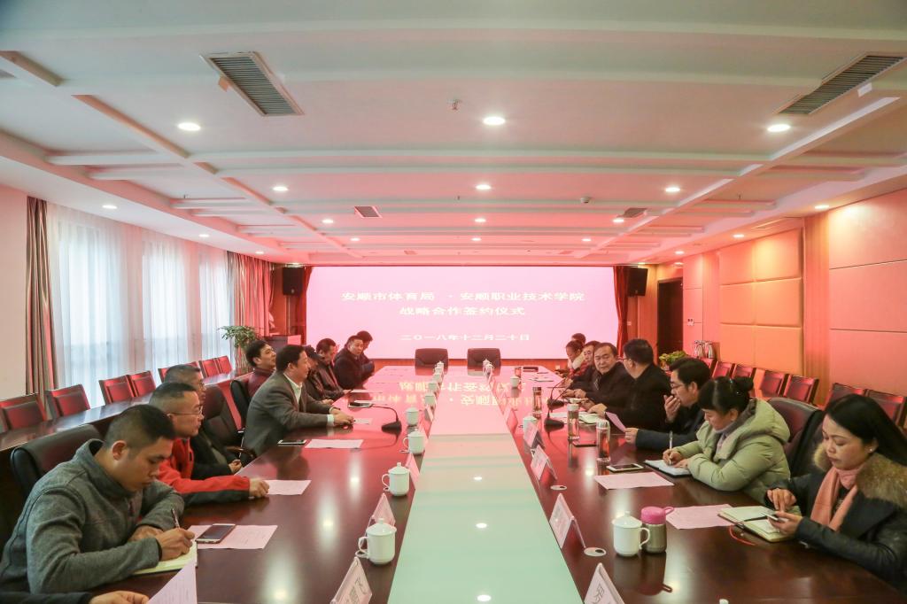 邓勇局长在致辞中强调今天协议的签订,既是体教深度融合的具体行动,也是安顺市青年训练体系建设的有益探索,是将职院学生资源与安顺市体育局专业素养相结合的合作,安顺市体育局对此次协议的签订高度重视,将由分管副局长牵头对这项工作进行全力的推进。邓勇局长认为双方的合作协议具有很强的操作性,希望市体育局特别是体育中心在协议规定的长期框架原则下,把协议中规定的或者已经明确的任务落实好,更重要的是在实践中探索好的方法、路径及机制,希望在推进青少年竞训体系有一些新的办法和良好势头。
