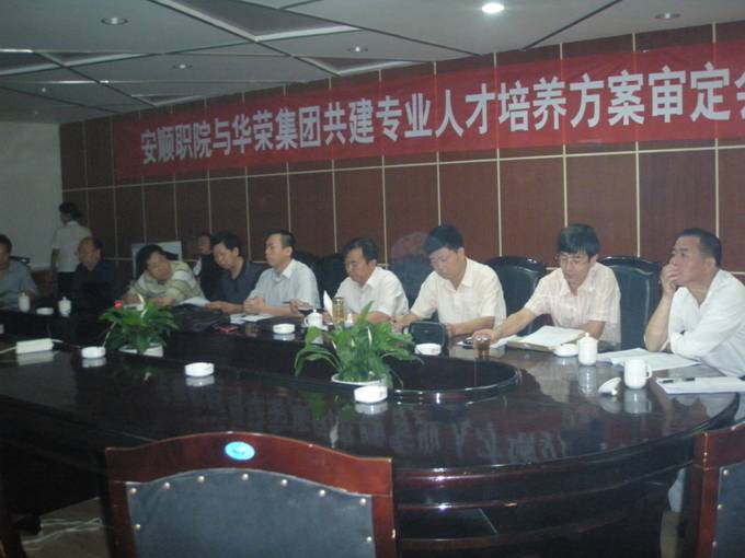 按照学院“S-ESE”人才培养模式要求,为切实加校企合作,落实学院与企业共同研究制定人才培养方案,我院与华荣集团于2010年9月4日上午在金鑫宾馆成功举办了“安顺职院与华荣集团共建专业人才培养方案审定会”。学院付贵生副院长出席会议并做了重要讲话。