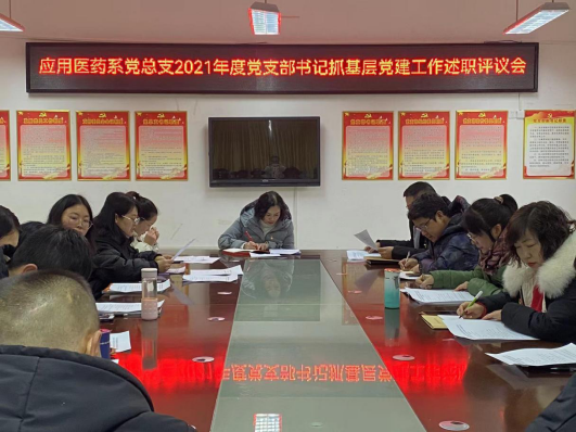 2022年2月25日上午,应用医药系总支召开2021年度党支部书记抓党建工作述职评议会。应用医药系党总支委员、教工党支部和学工党支部委员、党员代表参加了评议会。会议由党总支组织委员田华同志主持。