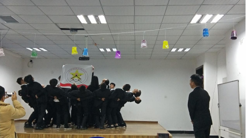 所有的公司团队展示结束后过后,由各公司总经理上台进行剪彩。胜羽科技有限公司、众星网络科技有限公司、合作联盟永恒公司、辉月科技有限公司正式成立,由老师给每个公司管理层颁发了聘书。