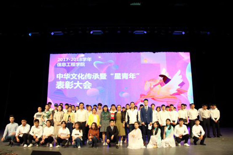 为表彰信息工程学院2017-2018学年度有突出贡献的优秀学生干部及典型事迹的先进个人,以此激励我分院学生学习工作的积极性。在学习宣传贯彻党的十九大精神中,进一步弘扬社会主义核心价值观,灌输爱国爱党,文化复兴的理念,扩大中华传统文化在学生中的影响力,同时为大力开展思想教育,提高学生思想水平;为丰富我院学生的大学生活,树立学生中的模范人物,营造学生奋发图强、争当优秀的良好氛围。信息工程学院于6月27日下午4:30在学生文化活动中心举办了中华文化传承文艺演出暨“星青年”表彰大会,出席此次大会的嘉宾有学院副院长方莉及信工学院党政班子。