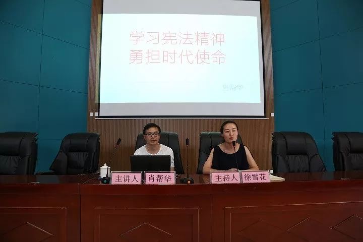 为了进一步增强广大师生学法、懂法、守法、护法意识,引导学生牢固树立“四个意识”,增强“四个自信”,坚定理想信念,树立以宪法为核心的法治观念,7月5日下午,我院在道德讲堂举行“学习宪法精神,勇担时代使命”讲座,各系(部)师生代表参加,团委书记徐雪花主持活动。
