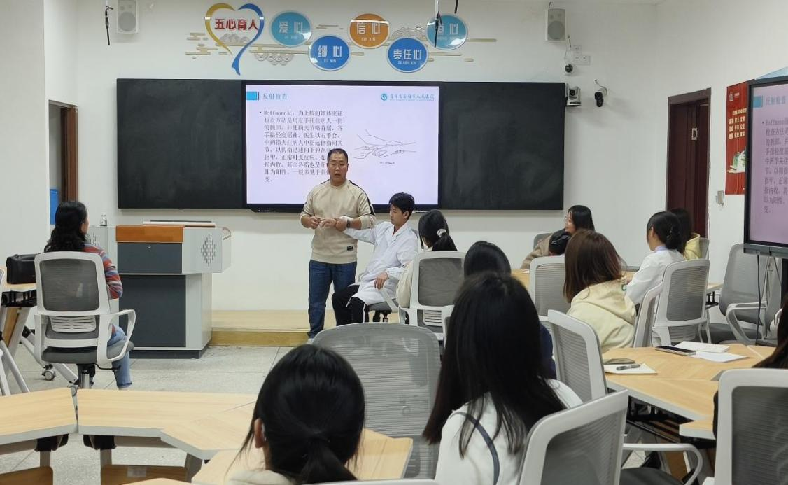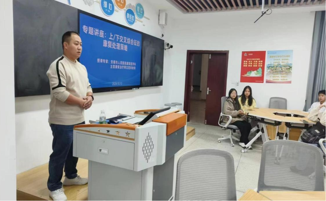 10月10日下午,安顺市刘霖大师工作室、安顺市职业教育医药卫生学科教研组,邀请安顺市人民医院康复医学科主管康复治疗师沈宽鸿老师,以“颈椎病的主动锻炼方法”为题,为我系师生带来一场健康知识讲座。