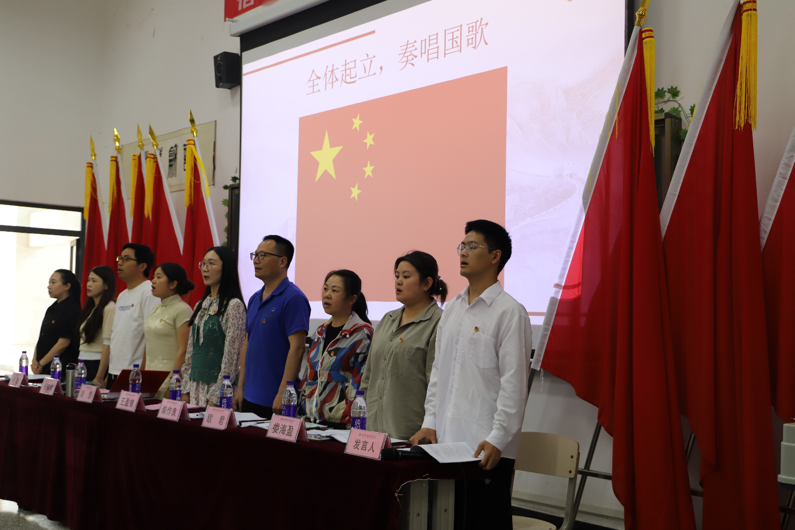 会议伊始,全体代表以饱满的热情,高声合唱中华人民共和国国歌。院团委组宣部主任王盈锦老师对大会召开表示祝贺,回顾总结工作,希望信息工程系团总支继续加强团员青年思想教育,把握青年动态促成才,带领团员青年为学校发展贡献青春力量。信息工程系党总支副书记胡雪致辞,对大会召开表示热烈祝贺,充分肯定了我系团学组织在思想引领、学风建设、权益服务等方面取得的显著成效。她对全体学生提出了三点期望:第一,找准人生定位,锤炼技能打磨爱好,在奋斗中创造独特价值。第二,勇于尝试,热爱专业永不停滞,在试错中成就职场梦想。第三,担当责任,立足脚下融入大我,在奉献中实现人生价值。