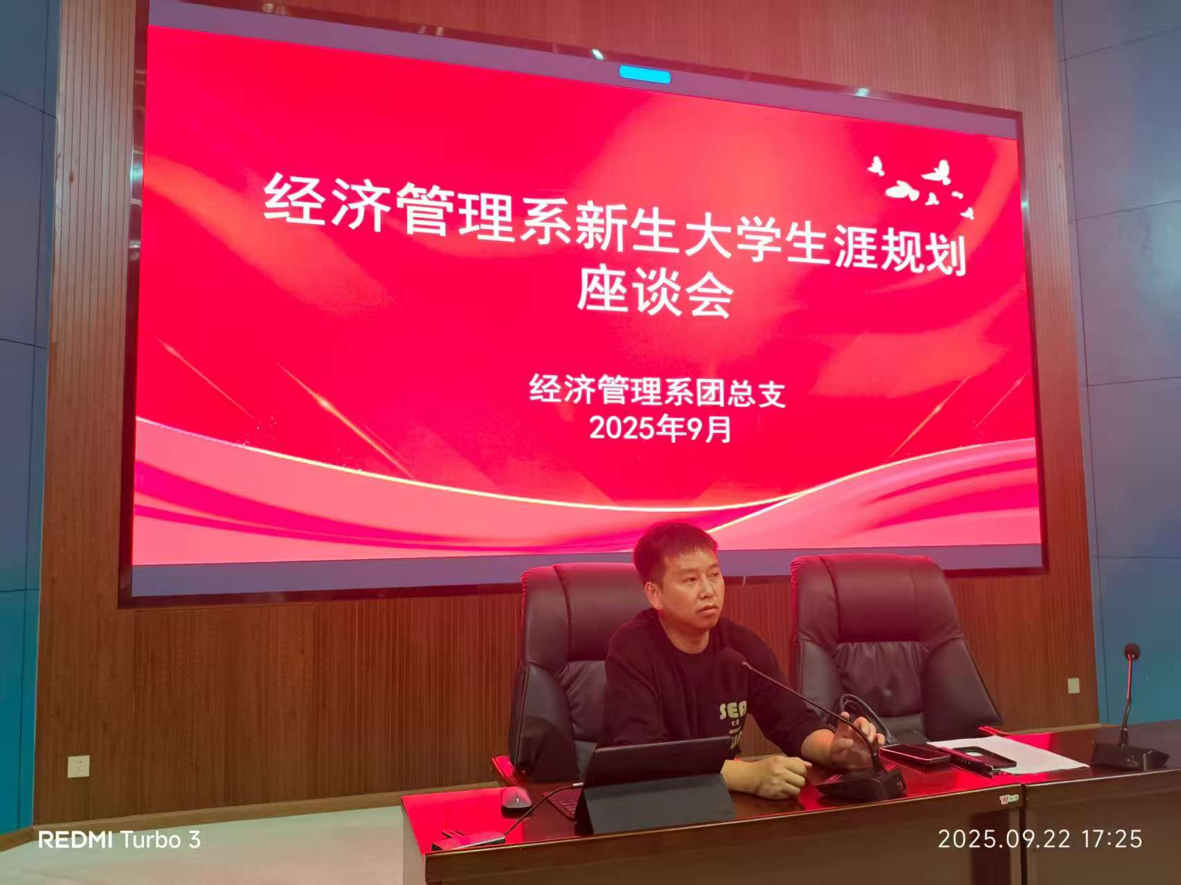 为帮助 2025 级新生尽快适应大学生活、明晰成长方向,扎实做好大学生职业生涯规划,经济管理系团总支于9月22日在院报告厅隆重举办以“为2025级新同学领航”为主题的大学生职业生涯规划座谈会,为刚步入大学校园的新同学们开启了一场关于未来成长的“导航盛宴”。