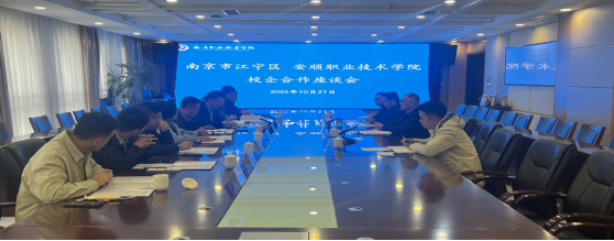 2025年10月27日,南京市江宁区与安顺职业技术学院校企合作座谈会在安顺职业技术学院综合楼620会议室顺利召开。会议由安顺职院招就处就业办主任罗天春主持,双方围绕校企合作、人才培养、学生实习就业等议题进行了深入交流。