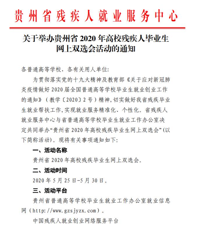 关于举办贵州省2020年高校残疾人毕业生网上双选会活动的通知