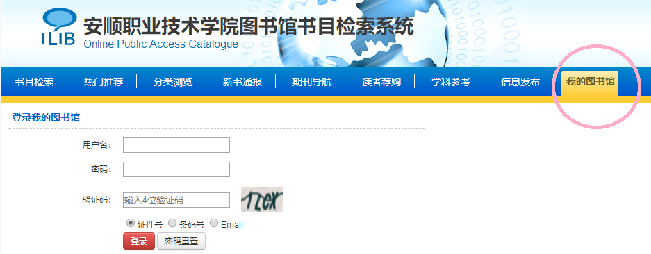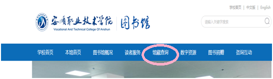 第二步:点击图书馆网页上的【馆藏查询】,进入【安顺职业技术学院图书馆书目检索系统】