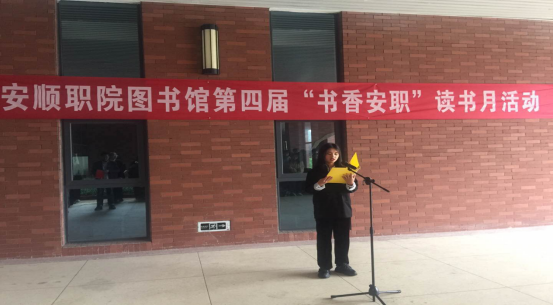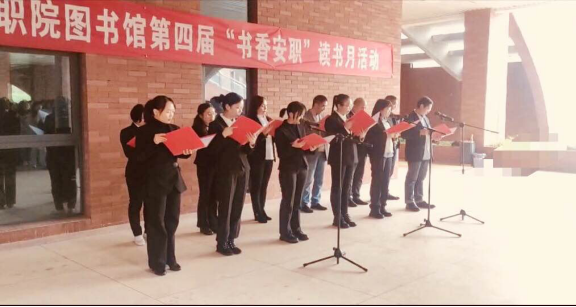 随后,图书馆全体教职工诵读《中国梦》、院团委“演讲与口才”学生社团同学诵读现代诗歌《相信未来》、图书馆读书协会同学诵读古典诗词《将进酒》,朗朗的诵读响彻活动现场,所有参加活动的师生沉浸在精彩的诵读中,图书馆门前弥漫着浓浓的书韵。