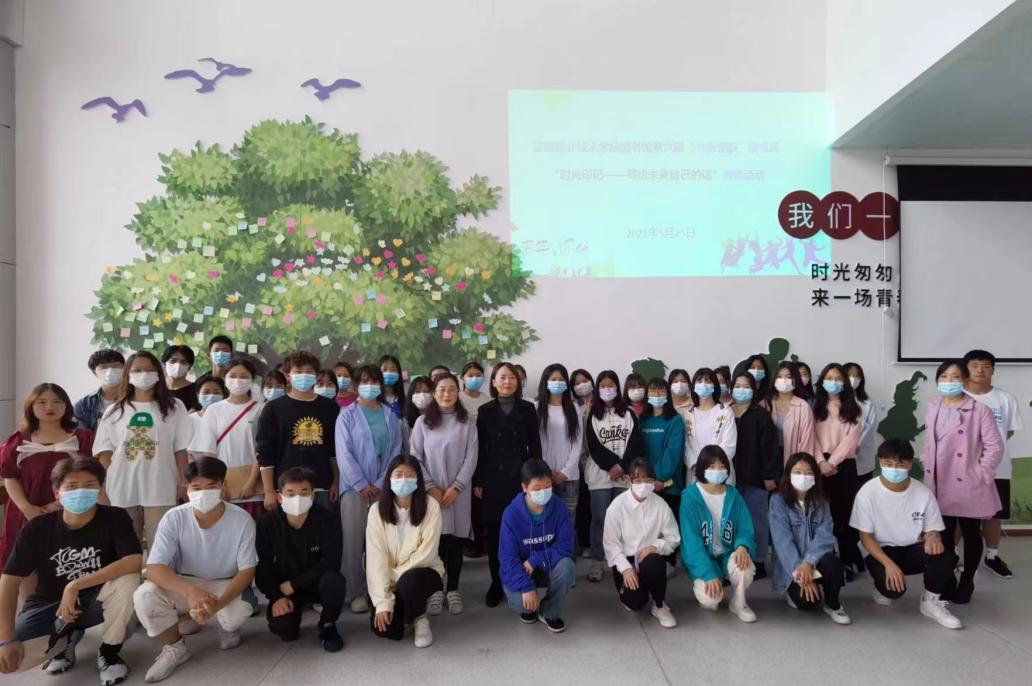 在同学们精彩的分享后,师生纷纷地在时光印记寄语墙上写下对自己青春与未来的寄语。最后,图书馆馆长严春云老师讲话,鼓励同学们明确自己奋斗的方向而不迷失,坚定自己的理想而不懈怠,将自己青春融入同人民一道拼搏、同祖国一道前进,服务人民、奉献祖国中去;让青春同党和人民事业高度契合,青春的光谱才会更广阔;用炽热的感情,满腔的热血去书写青春的篇章,坚定不移听党话、跟党走,与时代同步伐、与祖国共命运、与人民齐奋斗,几十年后再回首,希望同学们能自豪地说一声“青春无悔”。