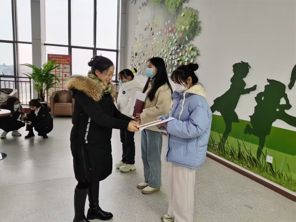 活动尾声,图书馆副馆长孙春梅为本期“阅读之星”获奖同学颁奖并致寄语,孙馆总结了本学期 “书韵安职 · 共读一本书”活动的开展情况,并肯定了活动取得的阅读成效。最后孙馆深情寄语同学们:我们没有办法延续生命的长度,但却可以增加生命的宽度和厚度,读书,便是最好的方法。