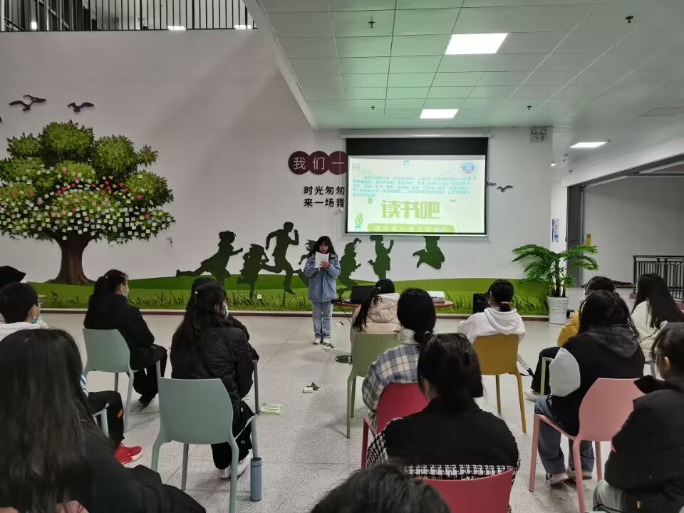 按学院团委统一部署,为深入学习贯彻习近平新时代中国特色社会主义思想,切实加强高校学生社团建设管理,充分发挥学生社团育人功能,进一步推动图书馆读书协会社团健康发展,图书馆读书协会于12月8日下午在图书馆三楼休闲阅读区举办了图书馆读书协会2022年社团年审汇报活动。图书馆读书协会会员代表、社团学生干部、指导老师共49人参加此次活动。活动由读书协会会长黄初凤同学主持。