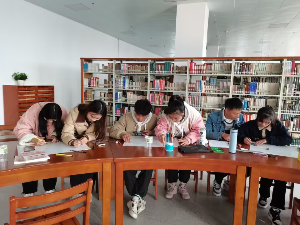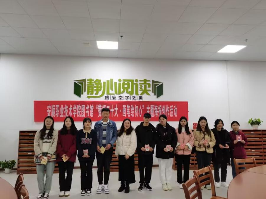 为深化图书馆“学习党的二十大·争当新时代工匠”主题阅读活动,引导青年大学生认真学习贯彻党的二十大精神,激励青年大学生把青春奋斗融入党和人民事业,坚定不移听党话、跟党走,怀抱梦想又脚踏实地,敢想敢为又善作善成,立志做有理想、敢担当、能吃苦、肯奋斗的新时代好青年,2月28日下午,图书馆成功举办“赞颂二十大·画笔绘初心”主题海报创作活动,图书馆馆长严春云、副馆长孙春梅、图书馆馆员代表、广大学生参加了此次活动。活动由图书馆读书协会蒋会、罗丹同学主持 。