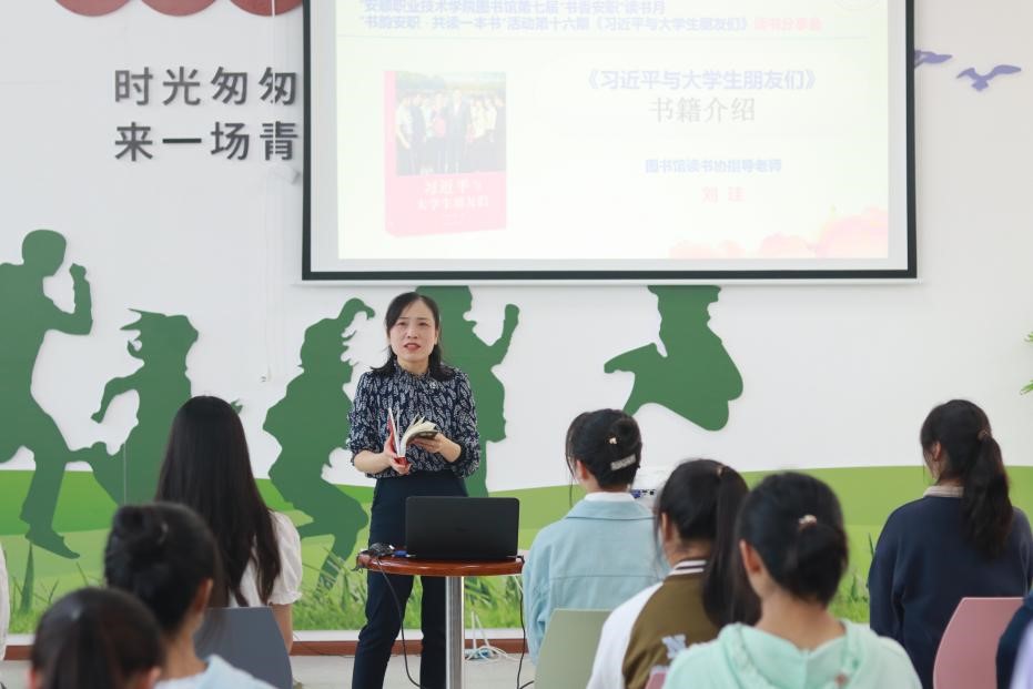 读书分享会上,图书馆刘珪老师介绍了本期阅读书籍《习近平与大学生朋友们》,并鼓励同学们要深切感悟习近平总书记对青年学生始终如一地真诚关心、真挚关爱与殷切期待。通过阅读,我们安职青年大学生要读出坚定、读出信仰、读出担当,不断加深对“两个确立”决定性意义的认识,切实把“两个确立”转化为坚决做到“两个维护”的思想自觉和行动自觉,要把学习成果切实转化为勇担青春使命的行动自觉。