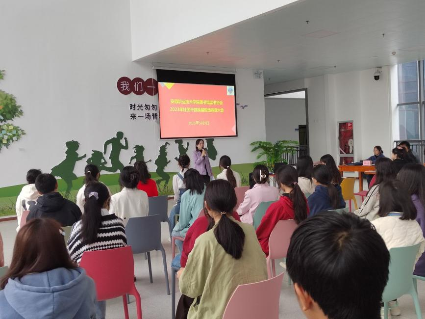 2022届社团干部即将结束为期一年的任职,根据学院团委关于社团干部换届工作的相关要求,为进一步加强图书馆读书协会组织队伍建设,继续发扬“读书、交流、服务,繁荣校园文化 ”办会宗旨,更好地服务于广大同学,本着公平、公正、公开的原则,5月9日下午,读书协会在图书馆举办了2023年社团干部换届竞选大会。读书协会业务指导部门图书馆副馆长孙春梅出席,指导老师刘珪、参加竞选同学、全体现任社团干部、部分会员代表共50余人参加活动。活动由读书协会指导老师刘珪主持。