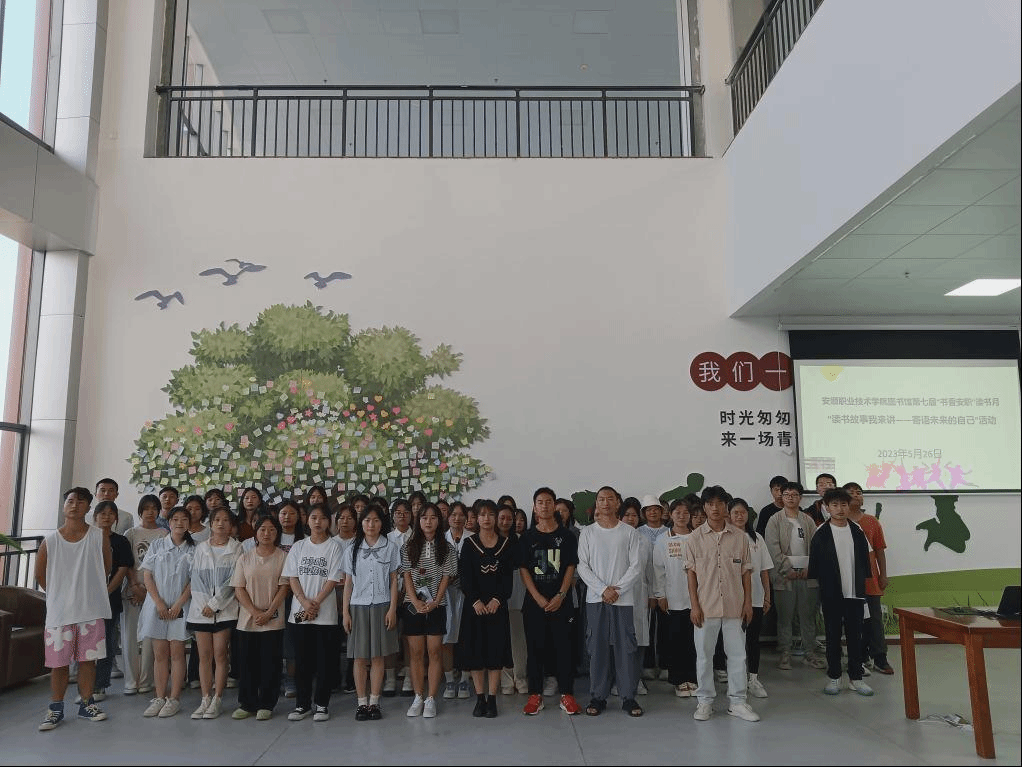 五月春光好,正是读书时。伴随着生机满目的春意,淡淡书香在安职校园流淌。为让同学们一起重温习近平总书记爱读书、勤读书、读好书、擅用书,学习领会习近平总书记的读书观,号召安职青年大学生积极参加到全民阅读活动中来,5月26日下午,图书馆举办了“读书故事我来讲 寄语未来的自己”活动。图书馆刘珪老师,图书馆读书协会会员代表,习近平新时代中国特色社会主义思想读书社社员代表,校内各系部同学代表,工作人员共70余人参加活动。活动由图书馆读书协会王开娟同学主持。
