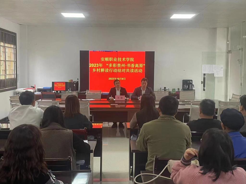 10月根据“多彩贵州•书香高原”乡村耕读行动2023年实施方案,认领安顺市耕读行动心愿单。10月9日下午我馆到耕读行动心愿单结对单位大西桥镇鲍家屯村开展主题读物结对阅读活动。西秀区委宣传部孙艳,鲍家屯村村支两委领导,学院党委宣传部副部长付玛、综合科副科长鲍阳阳,马克思主义教学部副主任张宏杰、应用医药系团总支副书记许锋,图书馆馆长严春云、副馆长孙春梅及村民代表参加了此次活动。