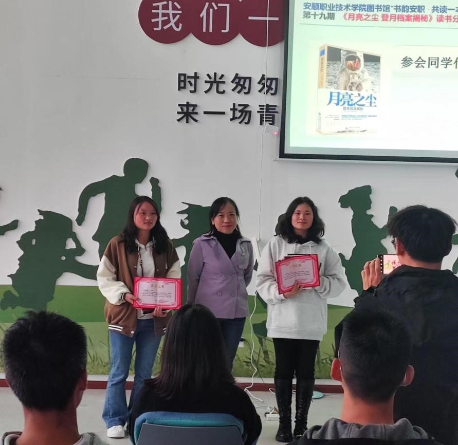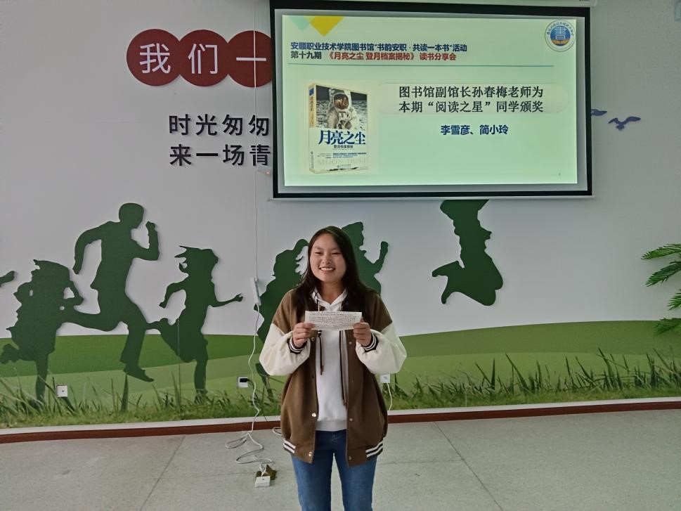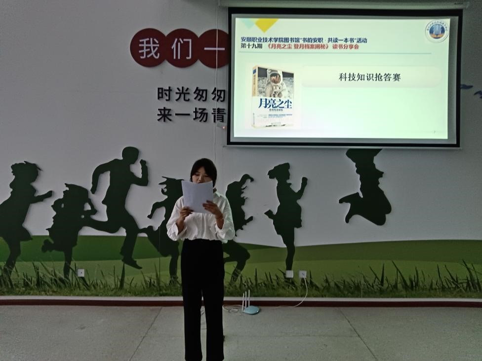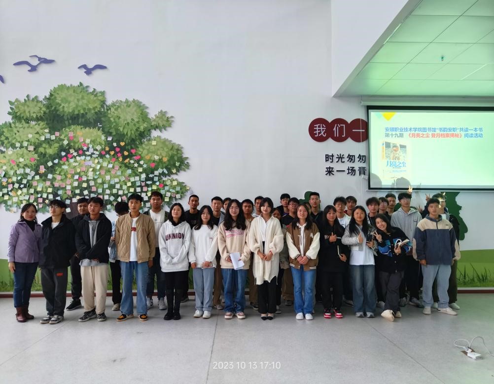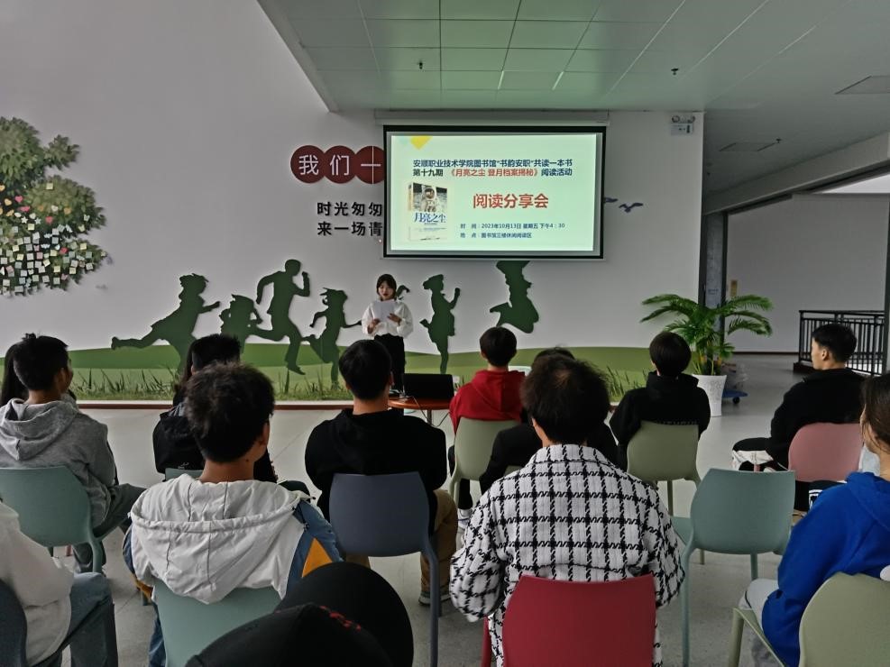 为深入学习宣传贯彻习近平新时代中国特色社会主义思想和党的二十大精神,弘扬科学精神,传播科学思想,倡导科学方法,普及科学知识,激发科学梦想和科学志向,促进学生科学素质提高,大力营造讲科学、爱科学、学科学、用科学的浓厚氛围。图书馆在9月组织开展了“书韵安职”共读一本书第十九期师生共读《月亮之尘 登月档案揭秘》阅读活动,10月13日下午在图书馆三楼休闲阅读区成功举办了线下阅读分享会。图书馆刘珪老师,校内各系部同学代表,师生代表共50余人参加活动。活动由吕荣春同学主持。