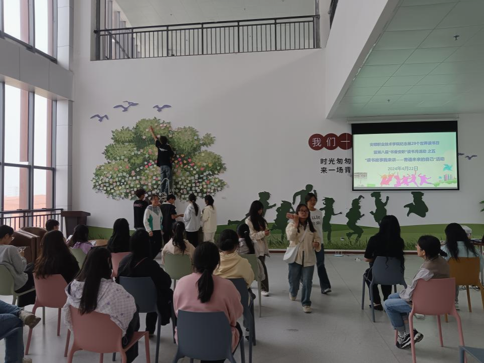 习近平总书记指出要加强读书学习,要爱读书、读好书、善读书。为促进同学们感受阅读之美,分享学习之乐,交流阅读体验感、幸福感,更好地发挥榜样的力量,帮助学生了解优秀学子的成长经历,4月22日下午,图书馆举办了“读书故事我来讲 寄语未来的自己”活动。图书馆副馆长孙春梅出席活动,图书馆读书协会指导老师刘珪、会员代表,校内各系部同学代表共70余人参加活动。