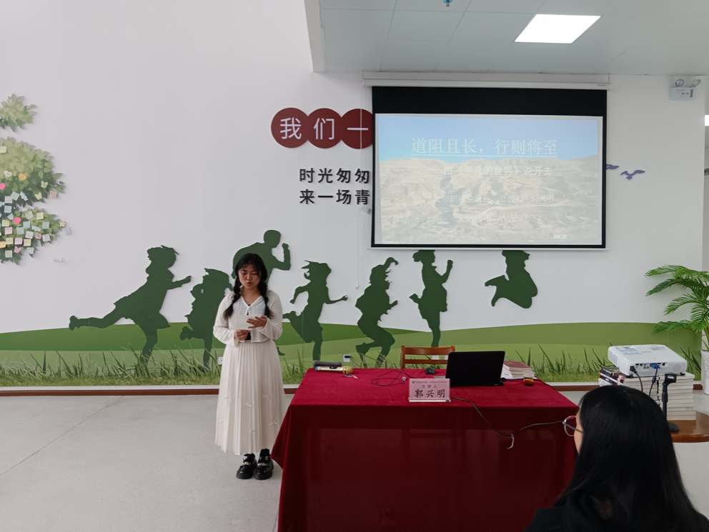 ▲郭贵欢同学通报本期共读活动情况