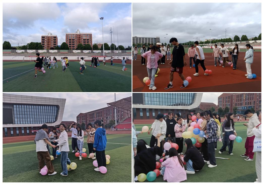 ▲同学们参与踩气球游戏活动