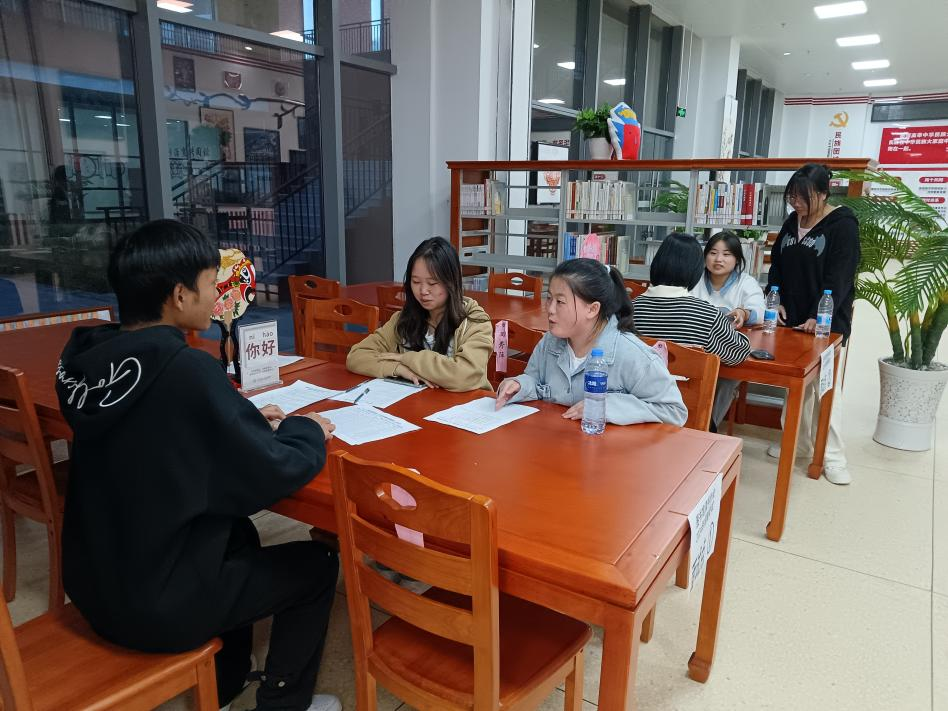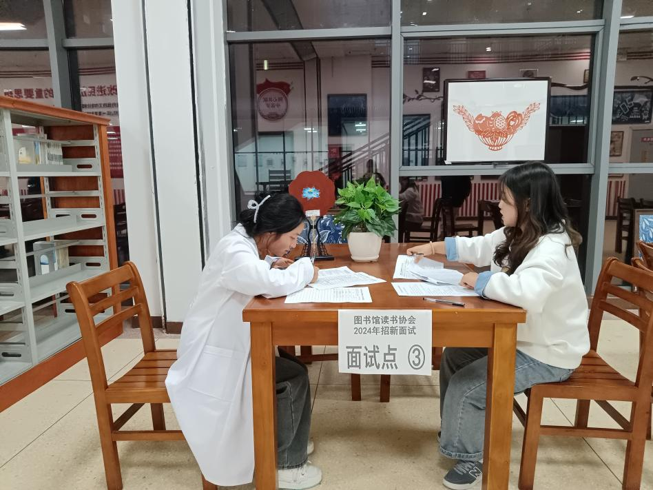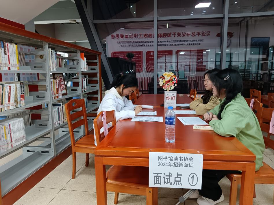 现场报名结束后,10月23日下午读书协会在图书馆开展了招新面试工作。