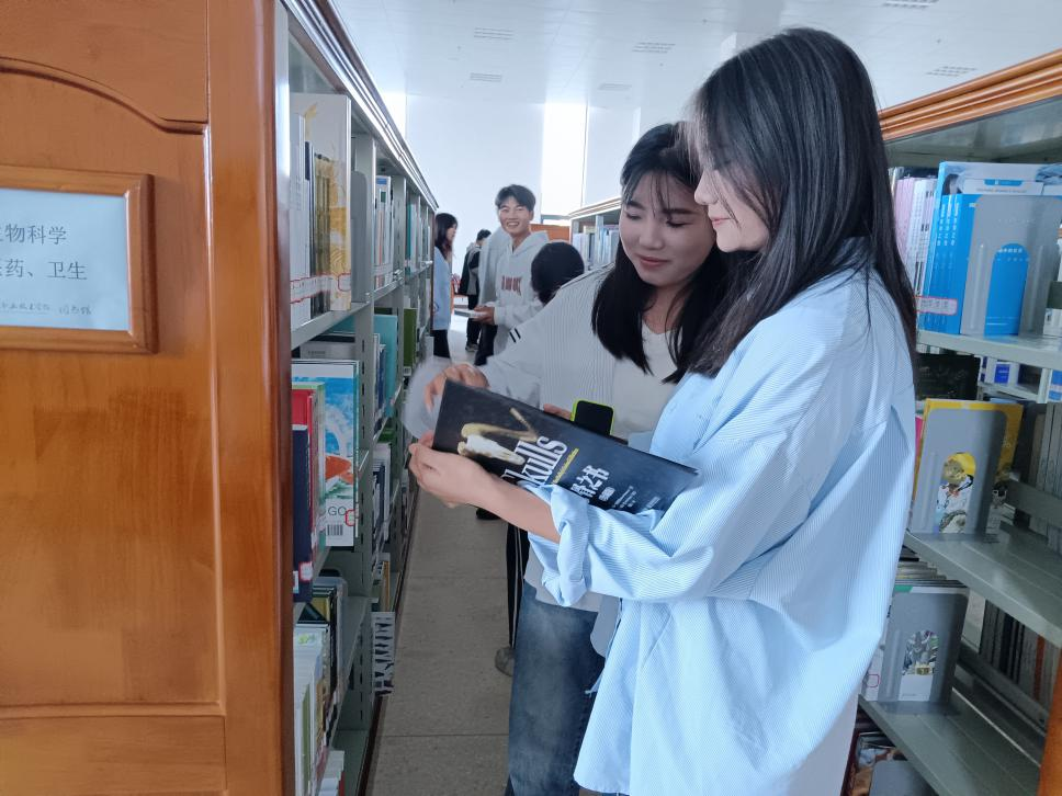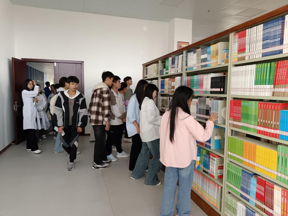 ▲小萌新们认真参观图书馆、查看陈列书籍