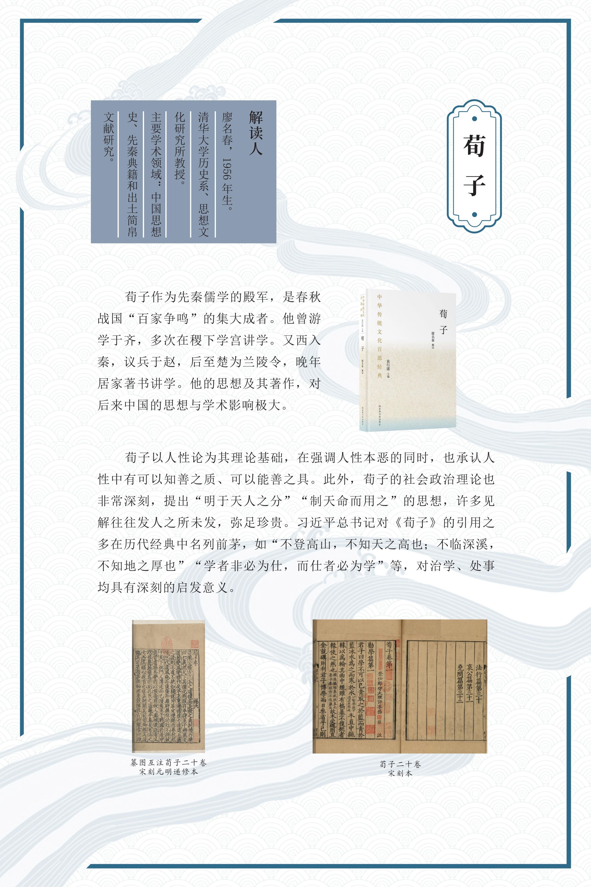 中华民族五千年文明薪火相传,留下浩如烟海的经典名著,是华夏儿女汲取不尽的精神财富。习近平总书记在党的二十大报告中指出:“要传承中华优秀传统文化,满足人们日益增长的精神文化需求,巩固全党全国各族人民团结奋斗的共同思想基础,不断提升国家文化软实力和中华文化影响力”.让我们一起阅读经典,从中华优秀传统文化中汲取文化自信的力量!