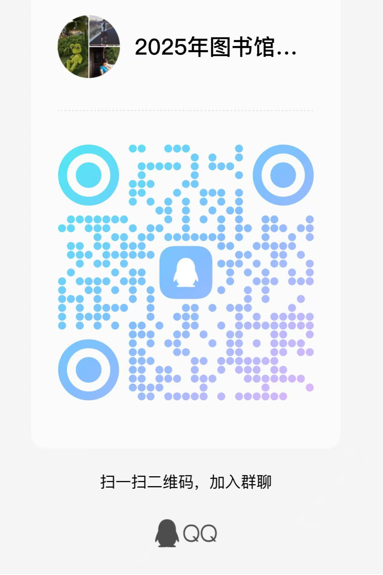 扫码加入"2025年图书馆阅读活动QQ群"(见下图),快来参与图书馆主题讲座吧。