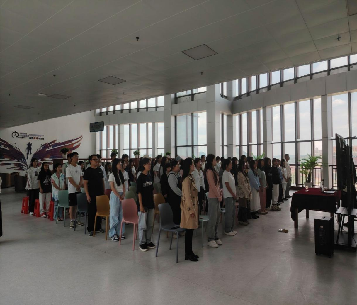 讲座设置了 “红歌猜猜猜” “集体传唱”等互动环节。现场师生积极参与,通过竞猜歌曲名称、分享红色记忆、齐唱红歌等形式,沉浸式体验革命先辈的奋斗精神。同学们纷纷表示,这种将音乐与党史结合的方式特别有感染力,让我们更深刻地理解了党的历史,通过歌声中的党史故事,引导青年从红色文化中汲取奋进力量,在新时代展现新担当新作为。