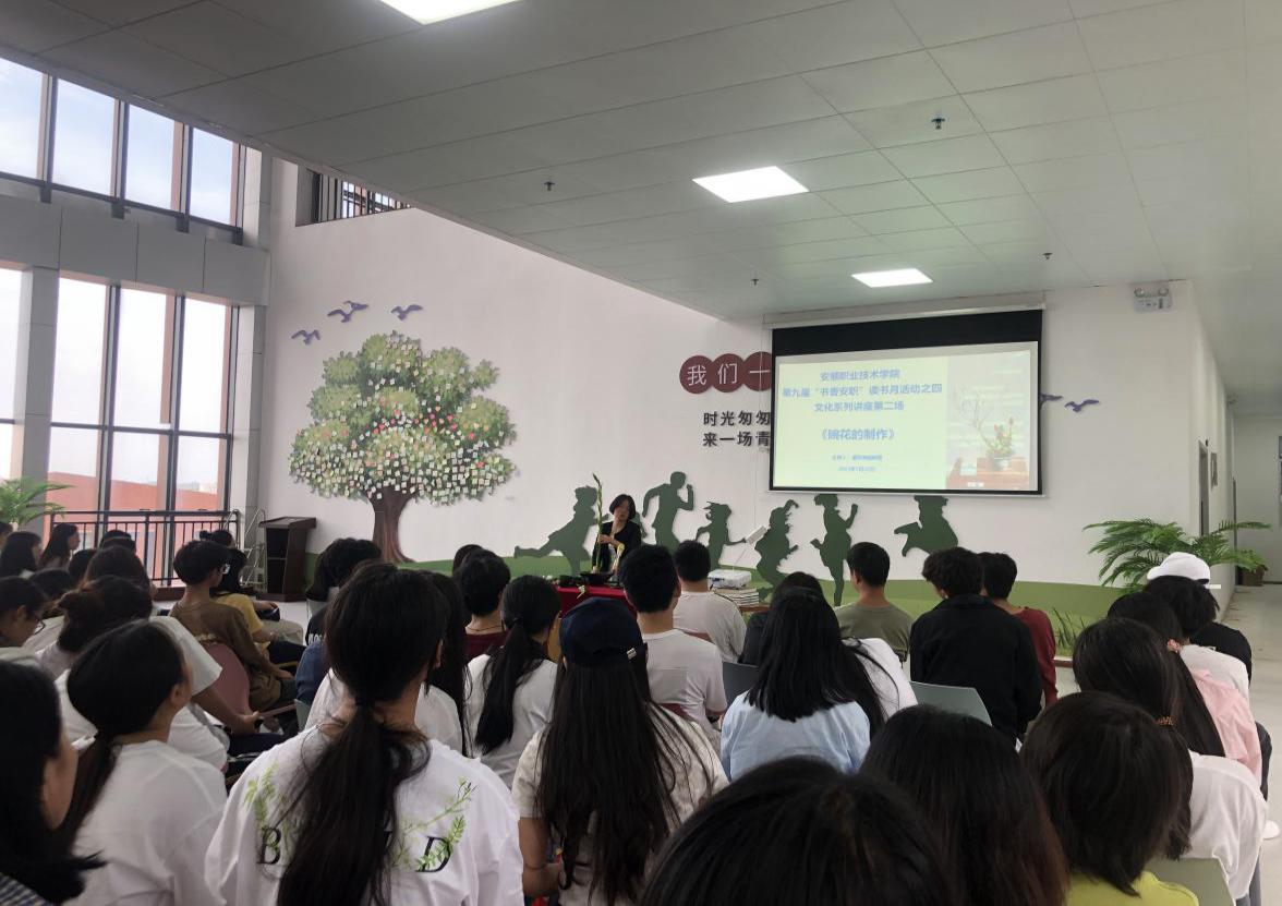 为传承与弘扬传统插花艺术,提升师生对中式插花的认知与实践能力,以美育人、以文化人,图书馆于 5月22日下午在三楼休闲阅读区成功举办《碗花的制作》主题讲座活动,邀请我院资深花艺师潘欢涛老师担任主讲,吸引了来自各系的 100 余名师生代表参加,图书馆馆长严春云出席活动现场,活动由读书协会承办,图书馆孙春梅老师主持。