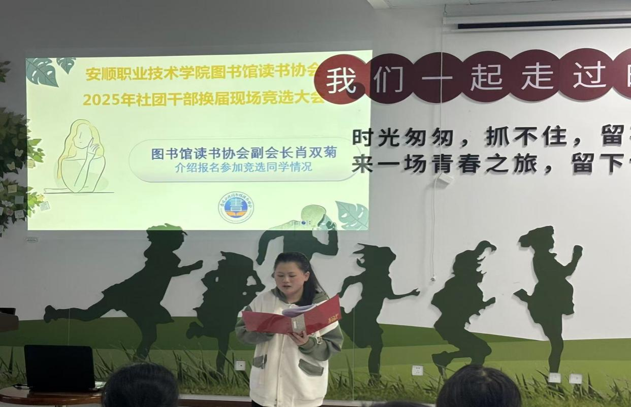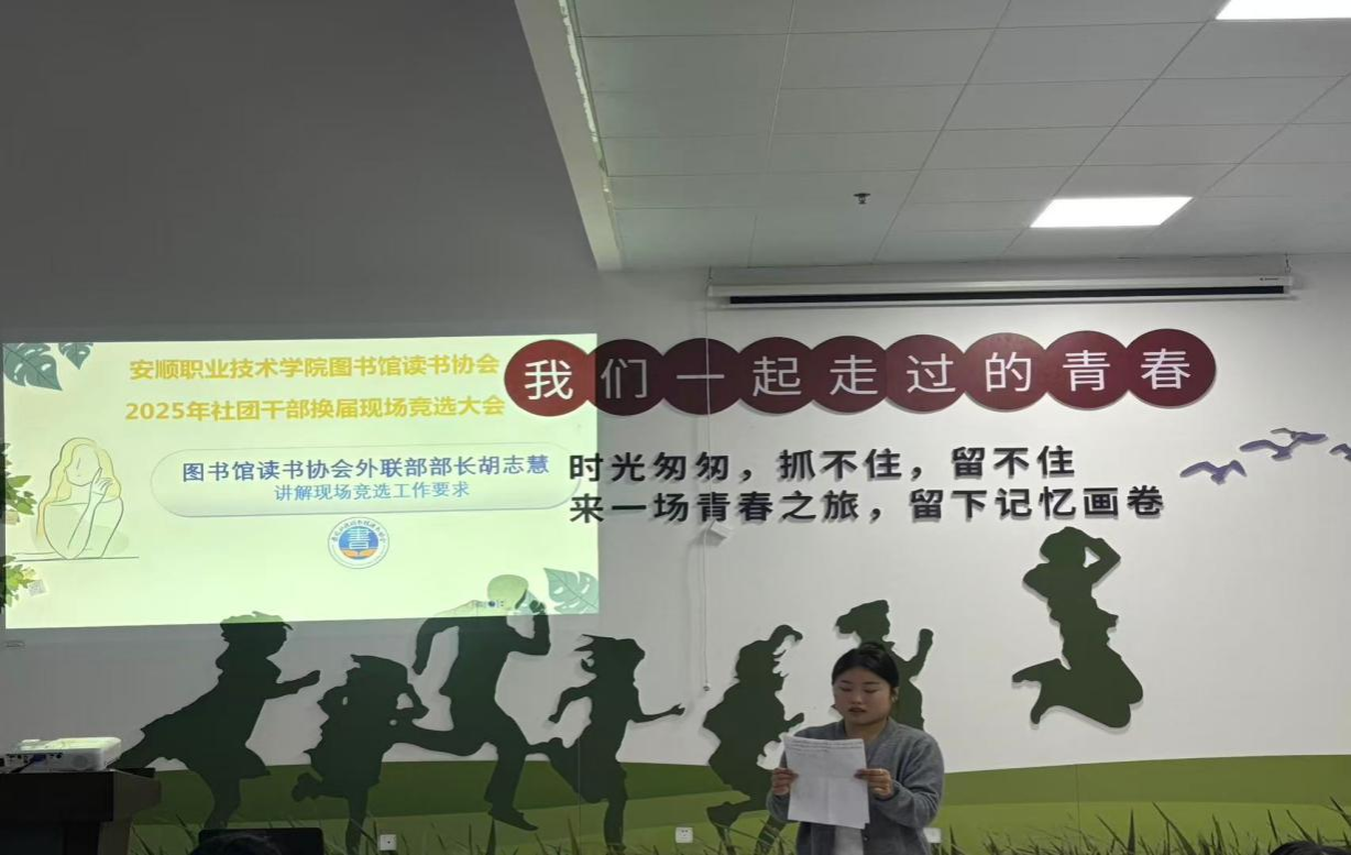 2024届社团干部即将结束为期一年的任职,根据学院团委关于社团干部换届工作的相关要求,为进一步加强图书馆读书协会组织队伍建设,继续发扬“读书、交流、服务,繁荣校园文化 ”办会宗旨,更好地服务于广大同学,本着公平、公正、公开的原则,5月27日下午,读书协会在图书馆举办了2025年社团干部换届竞选大会。读书协会业务指导老师许维丽、参加竞选同学、全体现任社团干部、部分会员代表共30余人参加活动。活动由读书协会外联部部长胡志慧主持。