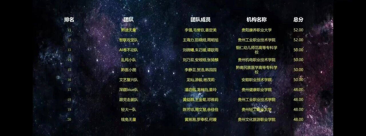 ▲贵州高职高专赛区晋级省级决赛部分名单