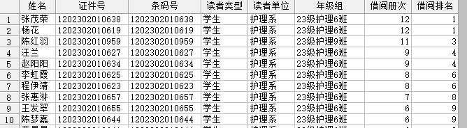 图书馆2024年11月份读者借阅排行榜