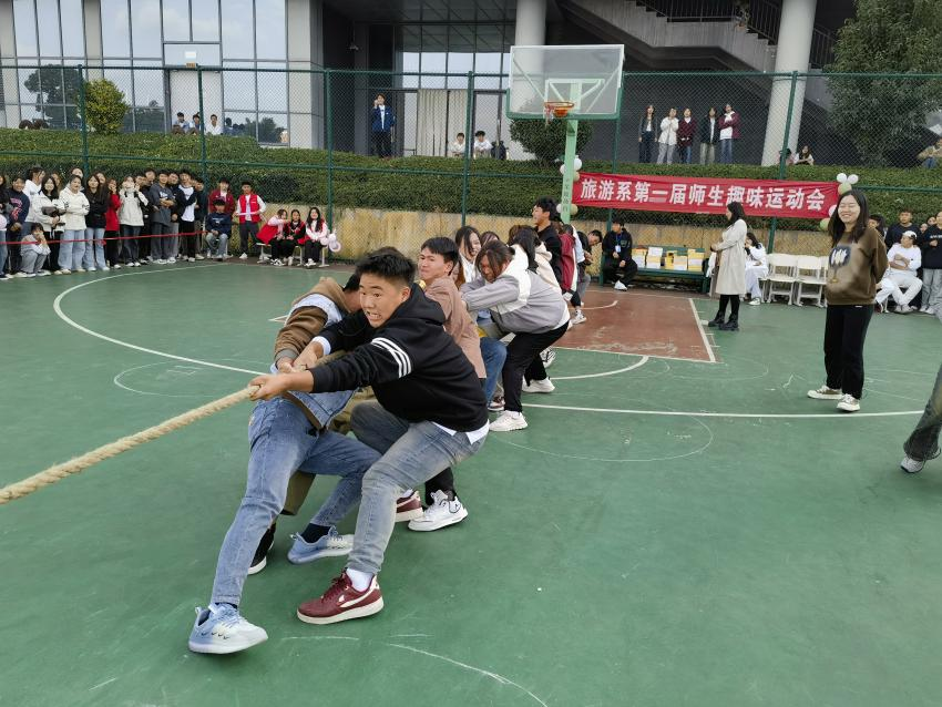 为丰富大学生课余生活,活跃校园气氛,展现大学生积极向上、开朗健康的精神风貌,2022年11月6日下午,由院团委主办,旅游系团总支承办的校园文化活动周“趣味运动会”在南食堂旁的篮球场如期举行。