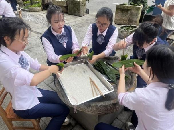 参观完后,打开粽叶,一颗颗饱满晶莹的糯米让人垂涎欲滴,大家自己的“作品”——粽子,此次活动不仅让同学们感受到浓浓的传统文化氛围,更感到在互帮互助包粽子过程中的厚谊和粽情飘香!