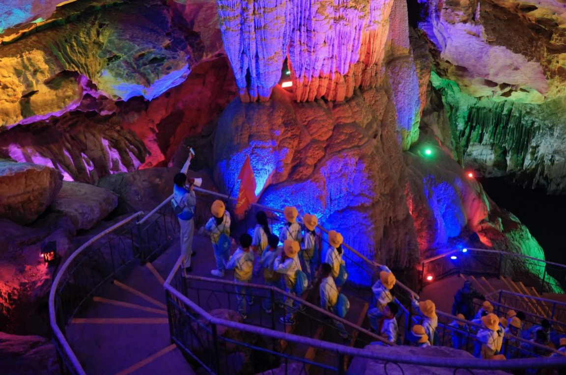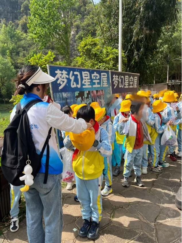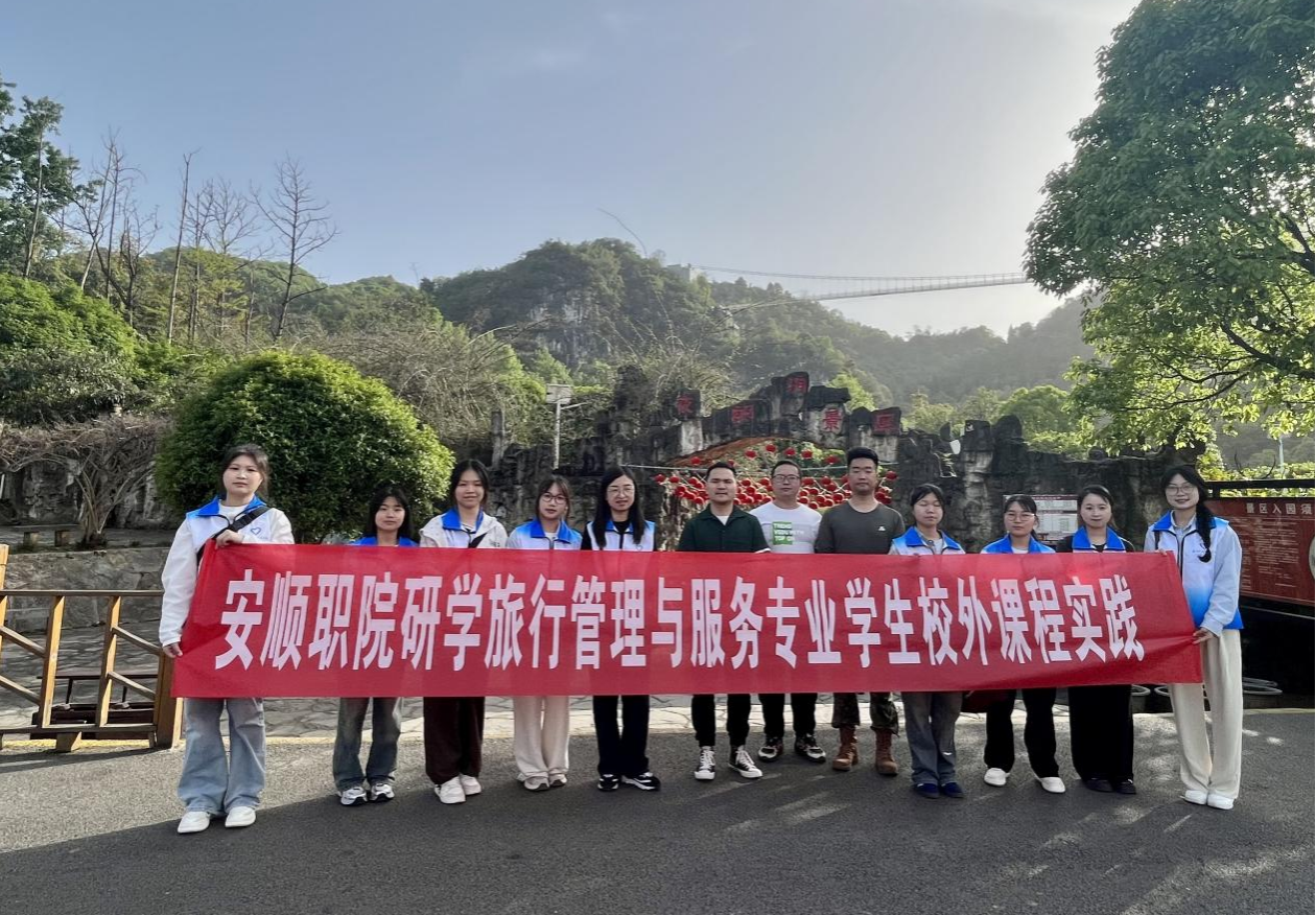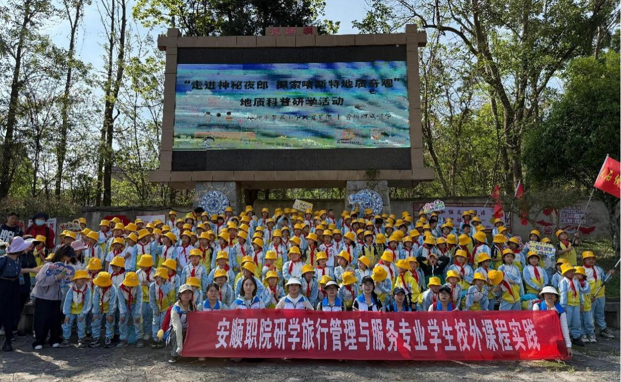 为深化产教融合,切实提升我院研学旅行管理与服务专业学生的实践能力与职业素养,4月15日、16日、22日,旅游系组织研学旅行管理与服务专业师生团队累计21人次,赴安顺镇宁夜郎洞景区开展校外课程实践活动,担任安顺市第五小学教育集团三年级19个班近800名学生的研学旅游指导师。通过“实地探索+手工实践+自然美育”的沉浸式教学,助力青少年自然科学启蒙,本次服务获得企业及安顺市第五小学教育集团师生一致好评。