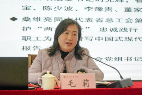 ▲省总工会党组成员、副主席毛莉宣讲贵州省工会第十五次代表大会精神