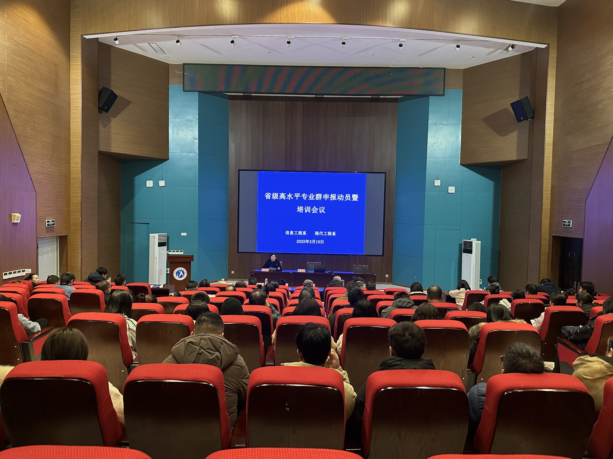 2025年3月10日下午,信息工程系和现代工程系在综合楼101报告厅召开省级高水平专业群申报动员暨培训会议。信息工程系党总支书记黄诗宜主持会议,学院党委委员、副院长李正华出席并作专题培训,现代工程系和信息工程系全体教职工参会。